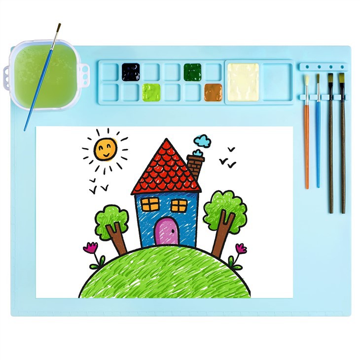 3. این تشک هنری سیلیکونی به روز دارای دو سینی رنگ گرد بزرگ برای مخلوط کردن مؤثر، یک فنجان تمیزکننده برس جمع شونده، و قابلیت استفاده به عنوان پالت رنگ و پالت است. این تشک سازنده سیلیکونی دارای فلس هایی در سمت چپ و پایین است که برای تولید هنری شما کاربردی تر است.